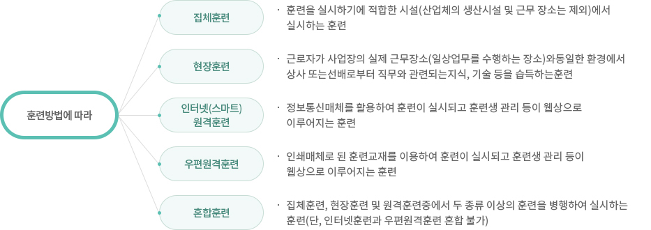 - 유급휴가 훈련 : 사업주가 재직 근로자를 대상으로 일정기간 이상 유급휴가를 주고 훈련을 실시할 때 지원되는 임금의 일부를 지원하는 훈련